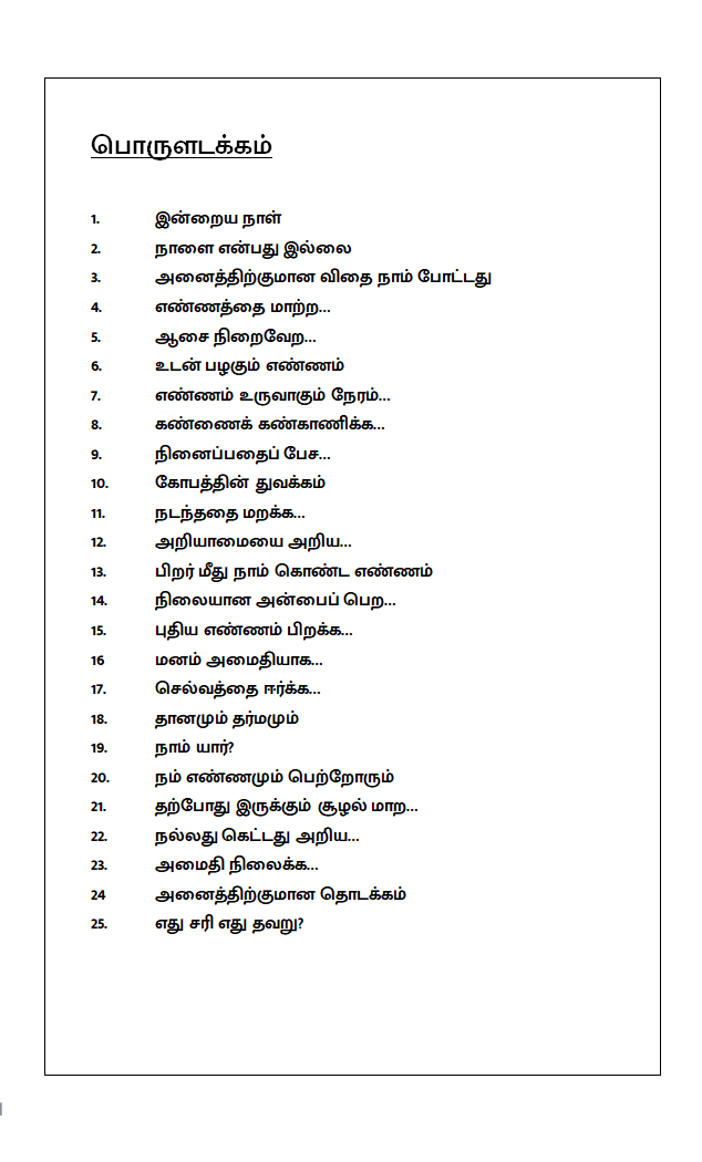 கீழ்கண்ட தலைப்புகளை தாங்கி எழுதப்பட்டு இருக்கிறது