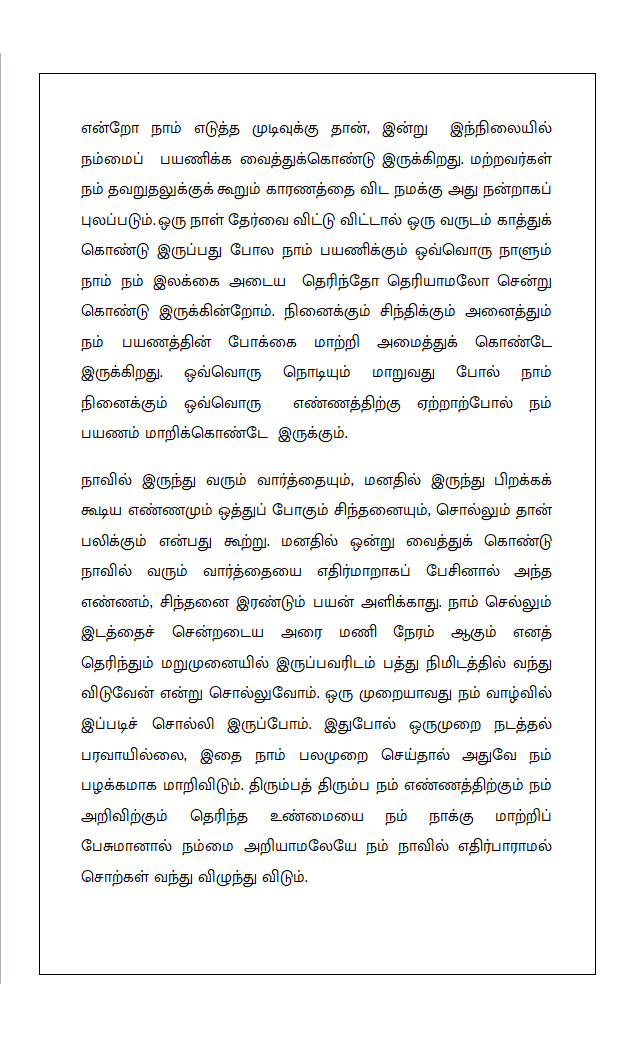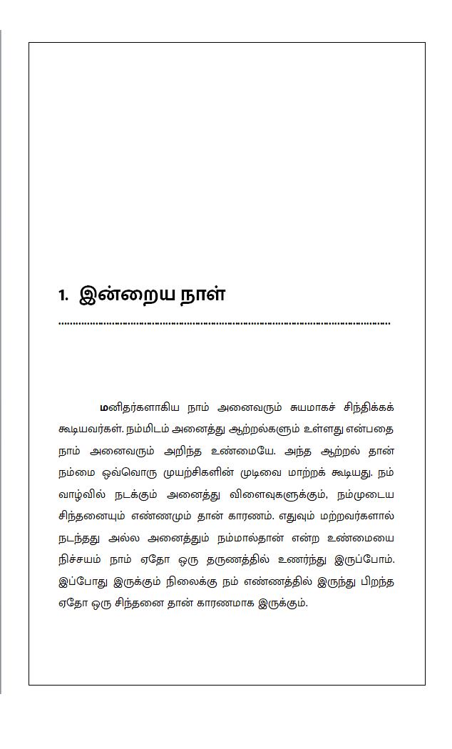 இதில் இருக்கும் எழுத்துக்களை வடிவமைக்க ஐந்து ஆண்டுகாலம் செலவிட்டு, பல மனிதர்களின் கசப்பான காலத்தின் அனுபவத்தை பெற்று, சில உளவியல் சார்ந்த நூல்களையும் வாசித்து அதன் முலம் நான் பெற்ற உணர்வை எல்லோருக்கும் கொண்டு சேர்ப்பதற்கான முயற்சியே இந்த இளைய எழத்தாளரின் இப் புத்தகம். .